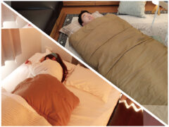 どちらも入った瞬間は寒いが、5分程すると暖かさを感じるようになった。寒がり、冷え性ではないので、どちらでも寝ることはできるが、B<化繊布団+おうちねぶくろん+湯たんぽ>の方があたたかく、中に入れていた手が汗ばむくらいに温まり、足元も湯たんぽの熱が逃げないため、全体的にぽかぱかしていた。