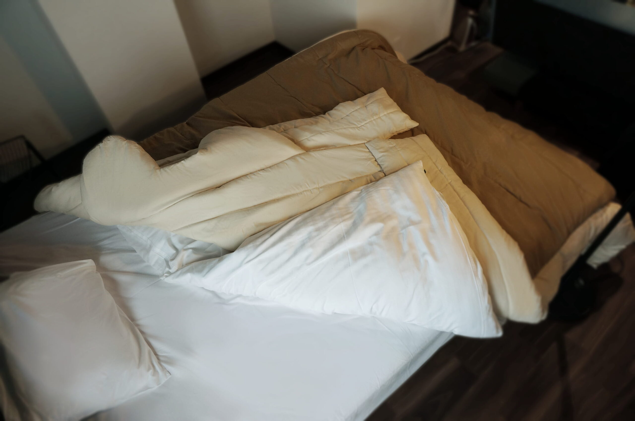 - 羽毛布団は体温を保つ構造ですが、布団内が暖まるまでの間に寒さを感じることがある。
